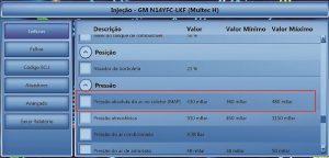 Confirmando sua suspeita, o valor de pressão absoluta do ar no coletor, lida por meio do sensor MAP, estava acima do especificado, esta alta pressão tem como uma das possíveis causas a falta de sincronismo do motor.