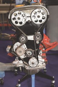 Após a realização de todos os testes, o técnico executou a verificação do sincronismo através da confirmação das marcações nas engrenagens do comando de válvulas e da árvore de manivelas.